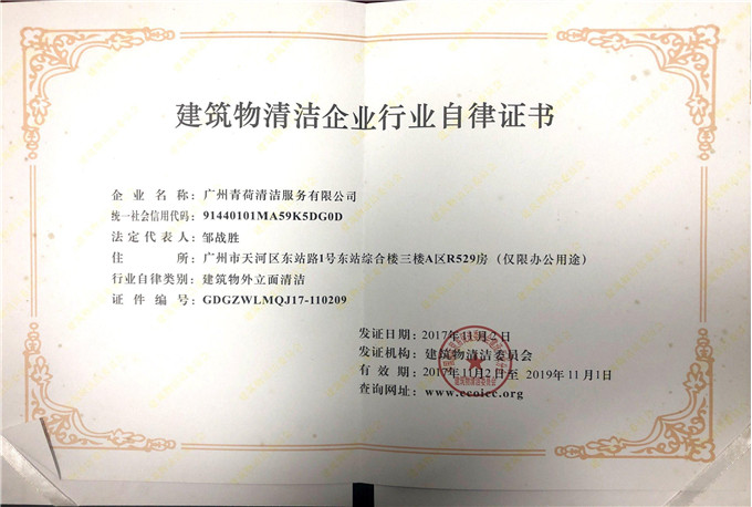 您的位置: 主頁  > 資質證書  > 建筑物清潔企業行業自律證書